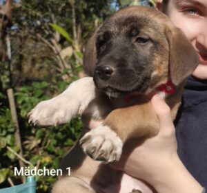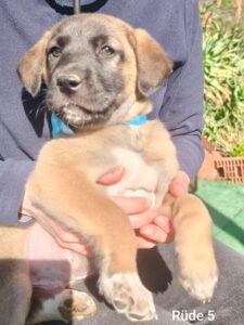 Lale wurde mit ihren 10 Welpen gefunden auf einem verwilderten Grundstück. Die Finder haben von mir ein freies Gehege bekommen und kümmern sich rührend um die jetzt noch 9 Welpen ( 1 ist verstorben) mit Mutter, bringen Futter, machen sauber und gehen mit der Mutterhündin spazieren. Lale geb. 18. 11. 2024 ist eine ruhige, liebenswerte Hündin und eine super Hundemutter. Sie wird ausreise fertig gemacht. SH 60 cm, 35 kg. Katzen mag sie nicht besonders.