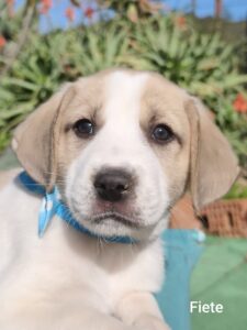 Das ist Pepe, ein Rüde. Er sollte von der Stadt eingefangen werden und konnte noch rechtzeitig abhauen. Nun ist er bei mir und wird ausreisefertig gemacht. Die Finder unterstützen mich dabei. Geb. 11. 05. 2025, ein ruhiger, freundlicher Junge, geht schon gut an der Leine, verträglich mit Hund und Katze und auch mit Kindern.