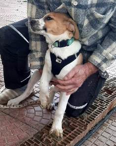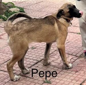 Das ist Pepe, ein Rüde. Er sollte von der Stadt eingefangen werden und konnte noch rechtzeitig abhauen. Nun ist er bei mir und wird ausreisefertig gemacht. Die Finder unterstützen mich dabei. Geb. 11. 05. 2025, ein ruhiger, freundlicher Junge, geht schon gut an der Leine, verträglich mit Hund und Katze und auch mit Kindern. Er kann ab 27. April 2026 ausreisen.