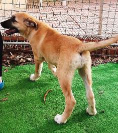 Lale wurde mit ihren 10 Welpen gefunden auf einem verwilderten Grundstück. Die Finder haben von mir ein freies Gehege bekommen und kümmern sich rührend um die jetzt noch 9 Welpen ( 1 ist verstorben) mit Mutter, bringen Futter, machen sauber und gehen mit der Mutterhündin spazieren. Lale geb. 18. 11. 2024 ist eine ruhige, liebenswerte Hündin und eine super Hundemutter. Sie wird ausreise fertig gemacht. SH 60 cm, 35 kg. Katzen mag sie nicht besonders. Sie kann ab 27. April 2026 ausreisen.