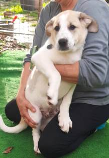 Serefe genannt Sherry, SH 40 cm , geboren 02. 02. 2025, sie wurde ausgesetzt und mit eine Gruppe Strassenhunde eingefangen. Als ich sie sah, war mir klar im Tierheim hat sie keine Überlebenschance, so habe ich sie aufgenommen. Sie wird ausreisefertig gemacht. Sehr verschmust und freundlich zu jederman auch zu Kindern und Katzen.